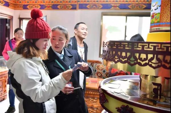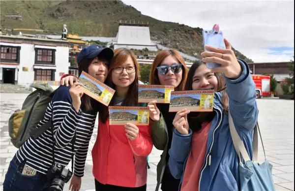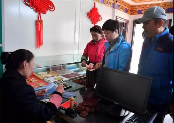 扎什倫布寺,來自香港的游客在展示中國郵政設計制作的景區(qū)門票。西藏郵政以深度融合西藏旅游文化、西藏民俗文化和郵政文化為核心,以郵政先進的網(wǎng)絡、技術為支撐,服務景區(qū),服務游客,融入西藏旅游發(fā)展熱潮,助推西藏旅游經(jīng)濟的發(fā)展。