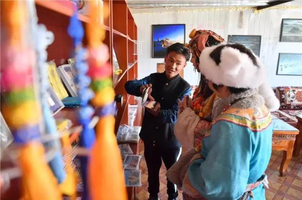 西藏自治區(qū)納木錯自然保護區(qū)郵局,旦增洛珠(左)正在給游客介紹旅游產(chǎn)品。自農(nóng)村電商工作開展以來,西藏郵政已在全區(qū)各地(市)多個郵政營業(yè)網(wǎng)點、便民服務站、小商超店、旅游景點等地建立“郵掌柜”、郵樂購、郵樂網(wǎng)、天上西藏E郵等網(wǎng)上購物和銷售系統(tǒng)。