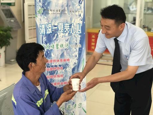 此外,在羅光明的建議下,淮南市分行以網(wǎng)點為依托,建立了19個“怡心小站”為戶外工作者和當?shù)厝罕娝颓鍥?,羅光明經(jīng)常會邀請環(huán)衛(wèi)工人、執(zhí)勤民警、快遞員、外賣員等前往“怡心小站”休憩并送上解暑茶水?!叭缃竦洁]儲銀行辦業(yè)務(wù),碰到下雨天還可以免費借傘,這里的服務(wù)太周到了?!蓖跖坑芍缘馗锌?。不僅在酷熱天氣為辛苦奔波的戶外工作者送清涼,羅光明還在網(wǎng)點配備了誠信便民傘。每到下雨天,在淮南市的大街小巷上,一把把印有“中國郵政儲蓄銀行”的便民雨傘猶如一張張笑臉,一點一滴中溫暖著萬千大眾。