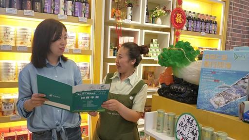 張立娟(左)向客戶宣傳“綠水青山 最美郵路”大慶站招商業(yè)務(wù)