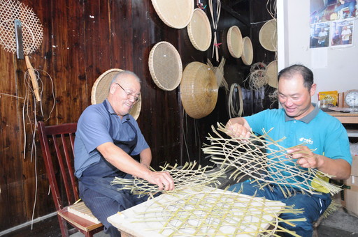 王曉豐投遞之余到父親家參與竹編。