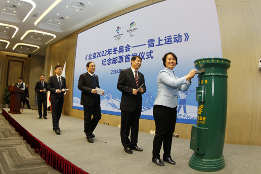 2018年11月16日,北京2022年冬奧會(huì)和冬殘奧會(huì)組委會(huì)(以下簡(jiǎn)稱北京冬奧組委)與中國(guó)郵政集團(tuán)公司聯(lián)合舉辦了“《北京2022年冬奧會(huì)——雪上運(yùn)動(dòng)》紀(jì)念郵票首發(fā)儀式”,北京冬奧組委秘書(shū)長(zhǎng)韓子榮和中國(guó)郵政集團(tuán)公司黨組副書(shū)記李丕征共同為紀(jì)念郵票揭幕。