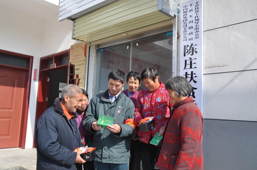 11月9日,江蘇省徐州市豐縣郵政分公司啟動(dòng)了黨建扶貧項(xiàng)目,并組織了以趙本增為“領(lǐng)頭雁”的黨員志愿者隊(duì)伍深入到與豐縣分公司簽訂扶貧合作協(xié)議的陳莊村進(jìn)行走訪調(diào)研,了解貧困人口比重、農(nóng)作物品種、貧困戶致貧原因等,并將趙本增“勞模工作室”作為黨建扶貧工作室與該村黨支部緊密聯(lián)系,確?!包h建扶智、精準(zhǔn)扶貧”政策落地。圖為黨員志愿者在調(diào)研的同時(shí)向貧困戶介紹“扶貧會(huì)員證”的用法。 □陳海彬 攝影報(bào)道