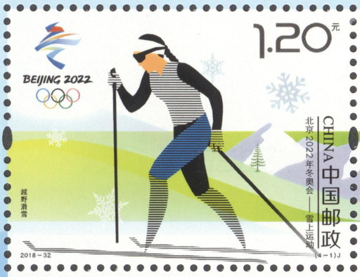 此次發(fā)行的《北京2022年冬奧會(huì)——雪上運(yùn)動(dòng)》紀(jì)念郵票一套4枚,為我國(guó)首套雪上運(yùn)動(dòng)郵票,分別表現(xiàn)了越野滑雪、高山滑雪、冬季兩項(xiàng)和自由式滑雪4個(gè)雪上運(yùn)動(dòng)項(xiàng)目。畫面中,滑雪運(yùn)動(dòng)員分別以水平線、同心圓、網(wǎng)點(diǎn)和放射線來(lái)表現(xiàn),體現(xiàn)出雪上運(yùn)動(dòng)項(xiàng)目的速度感、力量感和造型美感,富有透視感和精致簡(jiǎn)練的幾何形結(jié)構(gòu),描繪出雪上運(yùn)動(dòng)的特征與張力。郵票背景用流線型的波浪線和漸變的色帶把雪山、雪松和雪花等冬奧會(huì)的環(huán)境元素串聯(lián)起來(lái),在動(dòng)態(tài)變化中體現(xiàn)出秩序美。在印制工藝上,特殊材料印制的雪花晶瑩剔透,郵票版張邊飾上的“BEIJING2022”字樣則采用鏤空工藝制作而成,集藝術(shù)和防偽功能于一體。郵票發(fā)行的同時(shí),中國(guó)郵政還推出首日封、紀(jì)念封、郵折、郵冊(cè)等系列郵品在各郵政網(wǎng)點(diǎn)銷售,部分商品還可在北京冬奧會(huì)特許商品官方網(wǎng)店(http://beijing2022.tmall.com)上訂購(gòu)。