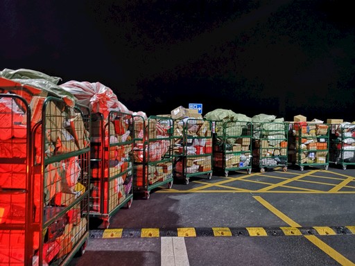 “雙11”期間,湖北省十堰市郵政分公司郵件處理中心日處理峰值達(dá)3萬件,凌晨時(shí)分,碼放整齊的郵件正等候處理。□黎紅琴 攝