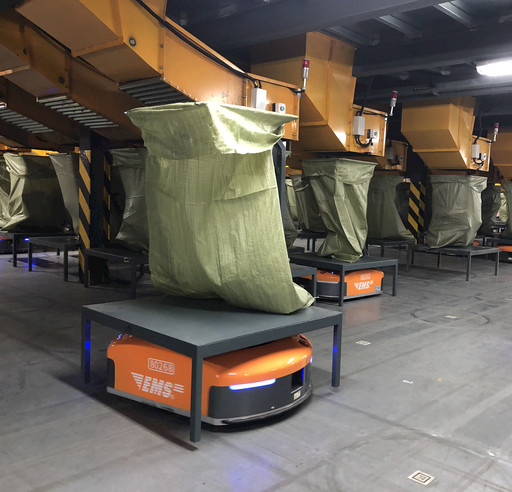 “雙11”期間,在郵政速遞物流華中(武漢)陸路郵件處理中心每天都能看到智能分揀機(jī)器人“橙色金剛”以每秒2米的速度繁忙穿梭。今年“雙11”,該處理中心新投入40臺頂升式搬運(yùn)機(jī)器人和25臺大件分揀機(jī)器人,郵件處理效率有效提升。 □湖北記者 余麗 攝