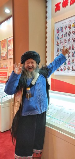 四川省甘孜縣郵政分公司長途郵運駕駛員其美多吉觀看展覽后,表示展覽很震撼:“通過郵票看到改革開放40年以來祖國的變化,也看到了郵政的變化,非常激動!”他專注地觀賞了“民族大團(tuán)結(jié)”郵票中藏族的那一枚。彝族同胞、南澗跳菜傳承人阿本枝也對“民族大團(tuán)結(jié)”郵票情有獨鐘:“第一排右邊數(shù)第二個就是彝族,我不屬于那個分支,但那個‘茲提’是很準(zhǔn)確的,這套郵票很棒!”身著彝族服裝、蓄著大胡子的阿本枝在現(xiàn)場為郵票豎起了大拇指。