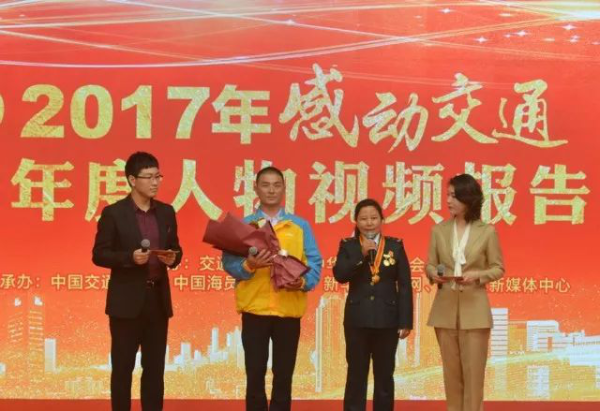 在2017年感動(dòng)交通十大年度人物視頻報(bào)告會(huì)上,尼瑪拉木為見義勇為的上海蘇寧物流有限公司快遞員翟秋云獻(xiàn)上鮮花,并號(hào)召全國(guó)郵政快遞從業(yè)人員向他學(xué)習(xí)。