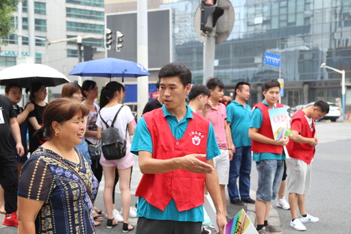 當(dāng)了人大代表也要帶頭做志愿者。2018年7月,柴閃閃參與上海站地區(qū)文明指路志愿活動。