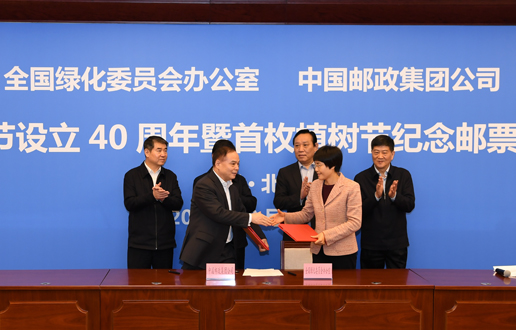 3月11日,中國(guó)郵政集團(tuán)公司與全國(guó)綠化委員會(huì)辦公室在京共同舉辦紀(jì)念植樹(shù)節(jié)設(shè)立40周年暨首枚植樹(shù)節(jié)紀(jì)念郵票發(fā)布儀式,并現(xiàn)場(chǎng)簽署合作框架協(xié)議。全國(guó)綠化委員會(huì)委員、國(guó)家林業(yè)和草原局副局長(zhǎng)劉東生,國(guó)家郵政局副局長(zhǎng)戴應(yīng)軍,中國(guó)郵政集團(tuán)公司黨組副書(shū)記李丕征、副總經(jīng)理張榮林,全國(guó)綠化委員會(huì)辦公室專(zhuān)職副主任胡章翠等出席發(fā)布儀式。