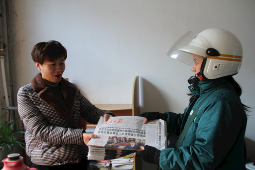 全國兩會期間,為方便廣大用戶和人民群眾更好地了解兩會消息,山東省茌平縣郵政分公司城區(qū)投遞部投遞員徐紅,每天早早地就等候在投遞部,報(bào)紙一分揀完畢,她便騎上車出發(fā)投遞。“你們來得真及時,我這就把報(bào)紙分發(fā)下去。”茌平縣委黨校傳達(dá)室的工作人員如是說。據(jù)了解,兩會期間,徐紅每天投遞《人民日報(bào)》等黨報(bào)100余份?!鯊埮喾f 攝影報(bào)道