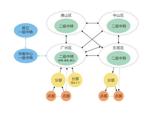 順豐、通達(dá)系基本是網(wǎng)狀網(wǎng),在省內(nèi)有多個(gè)分撥中心,分撥中心之間點(diǎn)對(duì)點(diǎn)直達(dá),且在處理中心主要采用“散件+集包”的方式,郵件集中到達(dá)、集中交換,在處理中心時(shí)間更短;而郵政主要是采取點(diǎn)對(duì)集散的方式,所有郵件在一個(gè)中心交換,導(dǎo)致部分地市互寄的郵件銜接時(shí)間較短或不能趕發(fā)有效頻次,需在處理中心停留到下一個(gè)頻次才能發(fā)運(yùn),導(dǎo)致郵件在處理中心時(shí)間過(guò)長(zhǎng)。“因此,為了進(jìn)一步縮短時(shí)限,郵政在網(wǎng)絡(luò)布局時(shí)就應(yīng)逐步將單點(diǎn)集散網(wǎng)升級(jí)到多中心網(wǎng)狀網(wǎng),充分發(fā)揮中山、東莞、深圳等節(jié)點(diǎn)功能,形成區(qū)域網(wǎng),各區(qū)域、各中心直接夠量直達(dá);同時(shí),打破行政區(qū)域,以時(shí)限、效益優(yōu)先為原則,靈活組網(wǎng)?!壁w洪濤告訴記者。