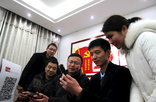 自“學習強國”APP上線以來,郵儲銀行安徽省阜陽市分行黨委大力推廣“學習強國”學習平臺,并組織全分行黨員積極參與學習、答題、考試,每天積分不少于30分,迅速掀起了“學習強國”手機網(wǎng)上學習的熱潮。圖為3月1日,阜南縣支行青年黨員在黨員活動室為入黨積極分子講解“學習強國”APP的安裝和使用?! 鮿⑷A武 攝影報道