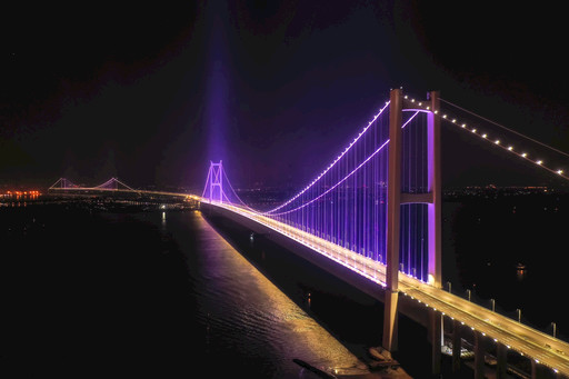 夜色下熠熠生輝的南沙大橋。陳敏 攝