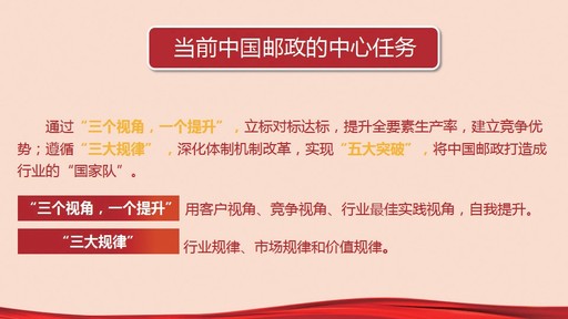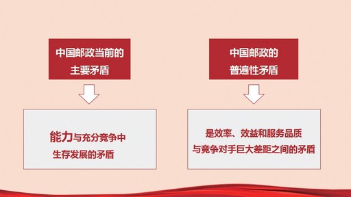 中國(guó)郵政當(dāng)前的主要矛盾是什么?黨課提出,是能力與充分競(jìng)爭(zhēng)中生存發(fā)展的矛盾。除了普遍服務(wù)以外,我們的所有業(yè)務(wù)全部是充分競(jìng)爭(zhēng)的行業(yè),可我們的競(jìng)爭(zhēng)力卻并不容樂觀。大家可以認(rèn)真思考一下,我們寄遞業(yè)務(wù)的競(jìng)爭(zhēng)力是什么?郵儲(chǔ)銀行的競(jìng)爭(zhēng)力是什么?中郵保險(xiǎn)的競(jìng)爭(zhēng)力是什么?農(nóng)村電商有沒有競(jìng)爭(zhēng)力?因此,中國(guó)郵政當(dāng)前的中心任務(wù)就是要通過“三個(gè)視角,一個(gè)提升”(客戶的視角、競(jìng)爭(zhēng)的視角、行業(yè)最佳實(shí)踐的視角,自我提升),立標(biāo)對(duì)標(biāo)達(dá)標(biāo),提升全要素生產(chǎn)率,建立競(jìng)爭(zhēng)優(yōu)勢(shì);遵循“三大規(guī)律”(行業(yè)規(guī)律、市場(chǎng)規(guī)律、價(jià)值規(guī)律),深化體制機(jī)制改革,實(shí)現(xiàn)“五大突破”,將中國(guó)郵政打造成行業(yè)的“國(guó)家隊(duì)”?!叭绻瓿刹涣诉@個(gè)中心任務(wù),無論我們多么辛苦、多么努力,都將一事無成”。