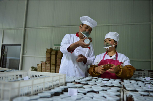 根據(jù)商州盛產(chǎn)香菇的優(yōu)勢(shì),中國(guó)郵政2017年以來(lái),累計(jì)捐資200萬(wàn)元,在商州區(qū)北寬坪鎮(zhèn)韓子坪村投資建成“郵老哥”香菇醬加工廠。該項(xiàng)目不僅為陜南地區(qū)盛產(chǎn)的食用菌找到了銷路,還填補(bǔ)了香菇醬產(chǎn)品在當(dāng)?shù)氐氖袌?chǎng)空白,在帶動(dòng)本村111戶371名貧困人口脫貧的基礎(chǔ)上,又輻射帶動(dòng)了鎮(zhèn)上其它村的102戶貧困戶,有效解決了周邊村鎮(zhèn)種植戶銷售難問(wèn)題,夯實(shí)了食用菌種植扶貧產(chǎn)業(yè)基礎(chǔ)。