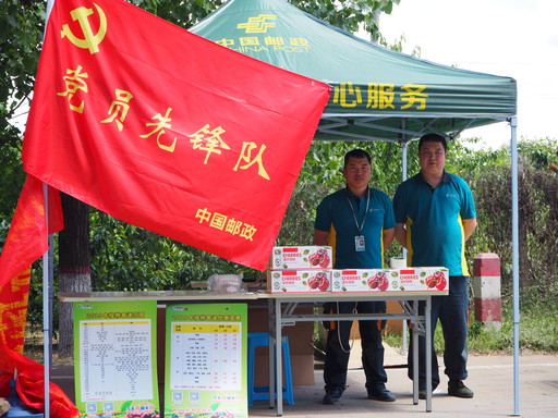 5月中旬,西安市郵政分公司組成黨員先鋒隊,幫助村民采摘、封裝、寄遞櫻桃。此外,為讓村民獲得更多實惠,西安市分公司在“郵樂網(wǎng)”“極速鮮”等線上銷售平臺為村民宣傳,讓陜西的櫻桃多條渠道走出去?!班]政來了,黨旗映紅了整個‘櫻桃谷’?!贝迕駛冞@樣說道?! 踉缑?nbsp; 攝影報道