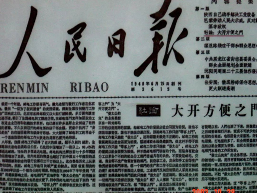 1958年6月2日《人民日報》在頭版發(fā)表社論《大開方便之門》