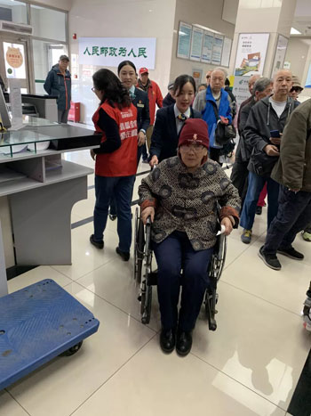 主動幫助行動不方便老人辦理業(yè)務(wù)的東四郵局員工
