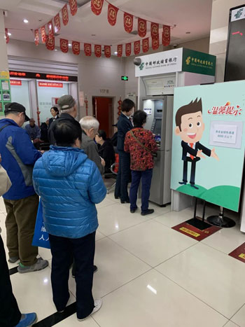 東四郵局副局長樊潔:“6000元以下養(yǎng)老金提取,這里是綠色通道,請您到這里來排隊……”