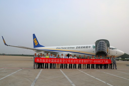8月9日,中國郵政航空公司首架B737-800BCF飛機安全飛抵首都國際機場。