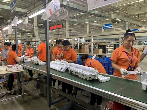 山東郵政為海爾企業(yè)提供綜合型物流服務(wù)。圖為膠州空調(diào)二期的工作人員正在組裝空調(diào)產(chǎn)品內(nèi)機(jī)送風(fēng)模塊。崔鵬森 攝