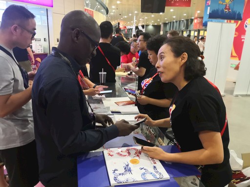 為了提升用戶體驗,展示郵政服務(wù)重大賽事的整體實力,北京體育郵局為本次賽事制作了特需郵品、明信片等6款產(chǎn)品,受到了廣大球迷的追捧,成為賽場外的一大亮點。圖為北京體育郵局工作人員為外國球迷提供郵品售賣服務(wù)?! 豕苘?nbsp; 薛壽源 攝影報道