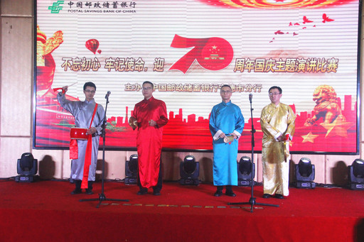 郵儲(chǔ)銀行福建省寧德市分行黨委舉辦了“迎70周年國(guó)慶”主題演講比賽。比賽采用雙人演講的形式,11支代表隊(duì)的選手聲情并茂地用小故事、小視角呈現(xiàn)對(duì)祖國(guó)的無(wú)限熱愛(ài)。員工們表演了令人捧腹大笑的“三句半”,深情演唱了《紅旗飄飄》《我和我的祖國(guó)》等愛(ài)國(guó)歌曲。阮玲玲 攝影報(bào)道