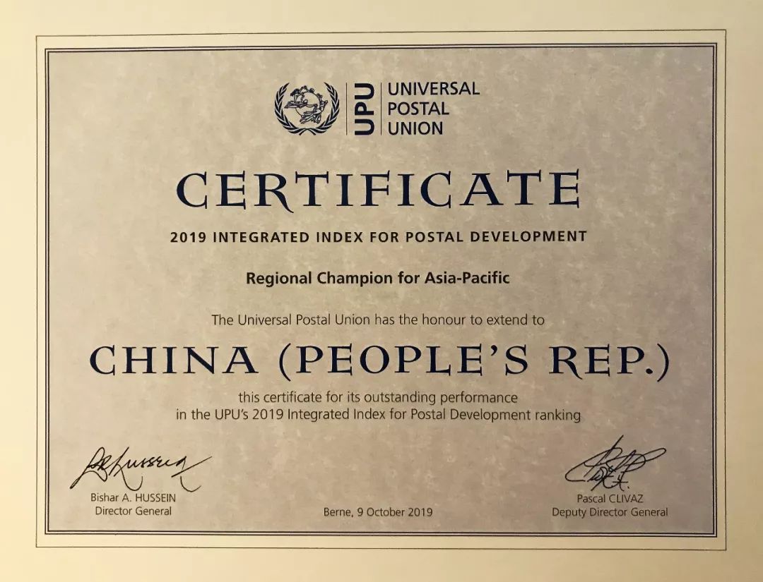 10月9日,萬(wàn)國(guó)郵政聯(lián)盟(以下簡(jiǎn)稱萬(wàn)國(guó)郵聯(lián))在瑞士伯爾尼總部舉辦一系列活動(dòng)隆重慶祝145周年生日,同時(shí)公布了2019年郵政綜合發(fā)展指數(shù)排名,瑞士、荷蘭、德國(guó)排名前三位,中國(guó)郵政取代新加坡,首次在亞太區(qū)排名第一,榮獲亞太區(qū)冠軍,在全球排名第15位。