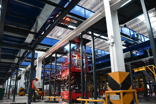 自10月中旬起,湖南省郵政分公司啟動(dòng)長(zhǎng)沙郵區(qū)中心局郵件處理中心集包作業(yè)工藝設(shè)備配備工程建設(shè)。長(zhǎng)沙中心局維護(hù)人員全員停休,按照現(xiàn)場(chǎng)施工的要求,每天安排5至7名技術(shù)人員參與工程建設(shè),協(xié)助廠(chǎng)方進(jìn)行線(xiàn)路布設(shè)、膠帶機(jī)設(shè)備拆裝、滑槽組裝、安防設(shè)施安裝等工作。據(jù)悉,設(shè)備改造后將增加4個(gè)卸車(chē)口、10個(gè)直連裝車(chē)口,預(yù)計(jì)提升處理能力20萬(wàn)件/天;新增集包臺(tái)席24個(gè),預(yù)計(jì)集包效率為3.6萬(wàn)件/小時(shí),確保新設(shè)備在“雙11”期間形成生產(chǎn)能力。□張思瑤 攝影報(bào)道