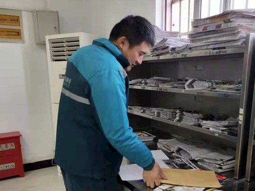 楊偉祥仔細(xì)地分揀郵件、報(bào)刊,確保無(wú)一差錯(cuò)。