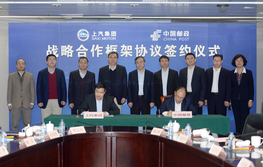 12月9日,中國郵政集團公司在上海與上海汽車集團股份有限公司(以下簡稱上汽集團)簽署戰(zhàn)略合作框架協(xié)議。中國郵政集團公司董事長劉愛力、副總經(jīng)理康寧,上汽集團董事長陳虹、總裁王曉秋、副總裁藍(lán)青松等出席。康寧、藍(lán)青松分別代表雙方簽署協(xié)議。