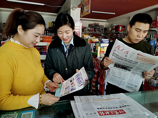甘肅省慶城縣郵政分公司在2020年報(bào)刊大收訂工作中,結(jié)合“不忘初心、牢記使命”主題教育,大力改變工作作風(fēng),做到早部署、早安排。除各營(yíng)業(yè)廳收訂專柜加班加點(diǎn)服務(wù),還變“坐等上門”為進(jìn)機(jī)關(guān)、進(jìn)學(xué)校、進(jìn)企業(yè)、進(jìn)社區(qū)、進(jìn)門店、進(jìn)村組等,上門宣傳業(yè)務(wù),極大方便了廣大訂戶。圖為12月6日,機(jī)關(guān)黨員支撐一線,來(lái)到超市宣傳業(yè)務(wù)?!趵钍罈?nbsp; 張海濤 攝影報(bào)道