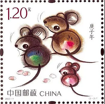 庚子鼠年生肖郵票第一圖名為“子鼠開天”,取自民間傳說“鼠咬天開”,萌動(dòng)之鼠騰空躍起,咬破混沌,遂成宇宙,寓意國(guó)家取得了開天辟地、繼往開來的巨大成就;第二圖為“鼠兆豐年”,三只小鼠一副歡喜自得模樣,寓意闔家歡樂,花生圖案一派豐收景象,寓意2020年五谷豐登、闔家歡樂。畫面運(yùn)用裝飾小寫意的畫法,結(jié)合傳統(tǒng)國(guó)畫的渲染技藝,展現(xiàn)了生肖鼠的可愛萌動(dòng),預(yù)示著偉大祖國(guó)的繁榮富強(qiáng)。