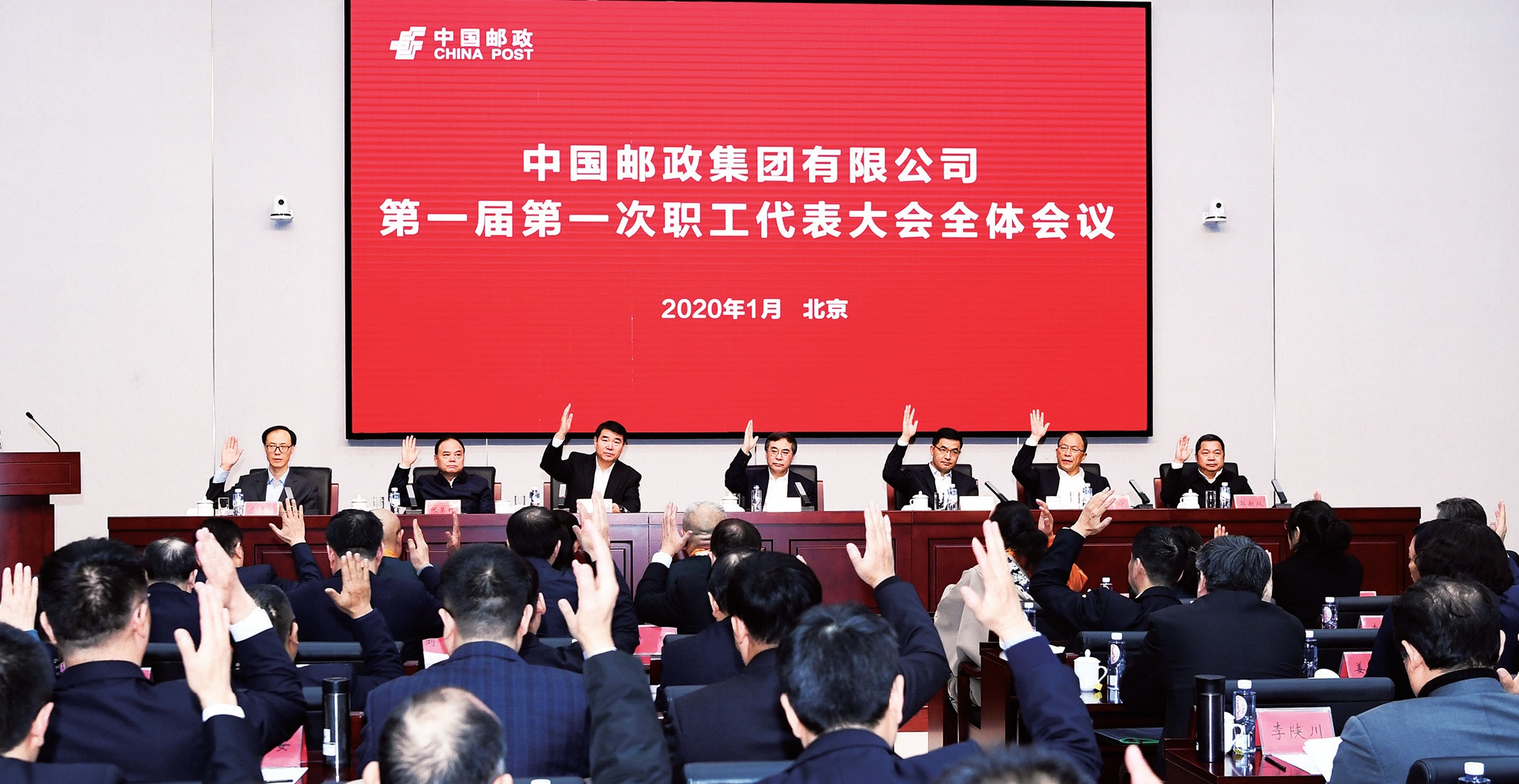 1月6日,中國郵政集團有限公司一屆一次職工代表大會在北京開幕。在家集團有限公司黨組成員出席會議,集團有限公司黨組書記、董事長劉愛力發(fā)表講話。集團有限公司黨組副書記、工會主席李丕征主持會議。