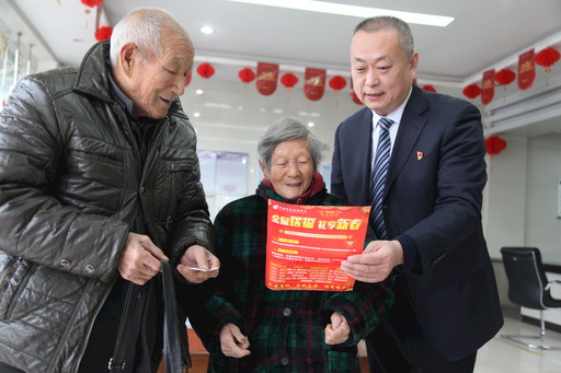 日前,河南省南陽市郵政分公司組織各網(wǎng)點做好春節(jié)營銷服務(wù)活動,在網(wǎng)點營業(yè)廳懸掛紅燈籠、張貼海報,向客戶進行業(yè)務(wù)宣傳,為客戶送上節(jié)日祝福。同時,該分公司組織黨員志愿者來到網(wǎng)點引導(dǎo)客戶辦理業(yè)務(wù),還開展為客戶送上熱茶等服務(wù),進一步提升客戶體驗。圖為南陽市宛城區(qū)郵政分公司黨員志愿者在網(wǎng)點向老年客戶介紹相關(guān)業(yè)務(wù)?!鮿⒘P 攝影報道