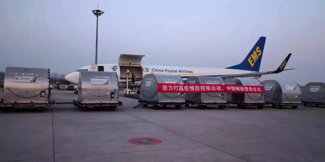 自中國郵政緊急啟動防疫救援物資綠色通道后,截至目前,中國郵政防疫物資寄遞專機已累計飛行五架次,將共計50多噸的防疫醫(yī)療救援物資在第一時間從廣州、上海、北京運抵武漢。