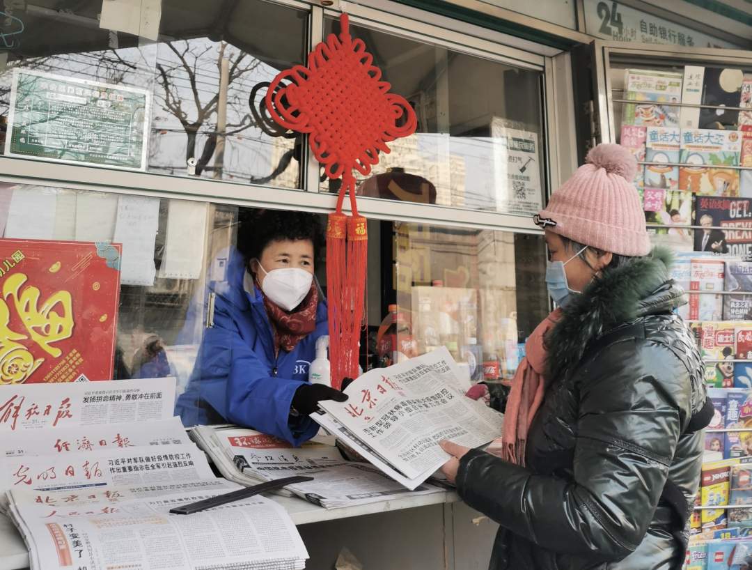 1月31日上午,大年初七。疫情之下,街上行人不多,豐臺區(qū)東鐵匠營街道宋莊路順?biāo)臈l甲20號院1號樓北側(cè)的73261號郵政報刊亭仍在堅守。經(jīng)營人鄭敏,55歲,自2016年以來,連續(xù)五年春節(jié)假期不關(guān)門不休息,熱心為群眾提供服務(wù),買報的大爺大嬸都親切地叫她大姐,在報刊亭周邊的幾個社區(qū)里都小有名氣。像是對面東城區(qū)政府宿舍的李大爺,旁邊高法家屬院的趙老先生,天天雷打不動都來光顧報刊亭,這已經(jīng)成為他們生活中的樂趣。