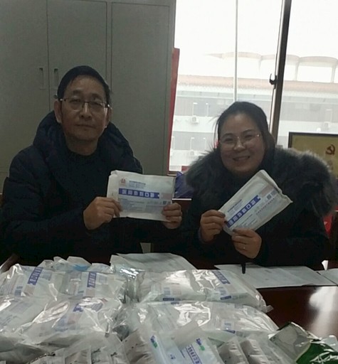 河南省駐馬店市西平縣郵政分公司黨總支和工會想方設(shè)法為員工采購了一批口罩,并配發(fā)到每一位員工手中,保障員工更好地堅守崗位,為客戶提供優(yōu)質(zhì)服務(wù)?! 跤谄G玲 攝影報道