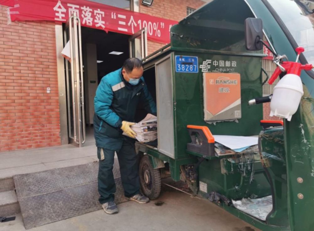 為了做好疫情防控,宋春梅除了每天按時(shí)投遞郵件,還堅(jiān)持對(duì)所在攬投部的場地、車輛和郵件進(jìn)行消毒處理,并每天幫助同事們測量體溫,確保人身安全和郵件安全。