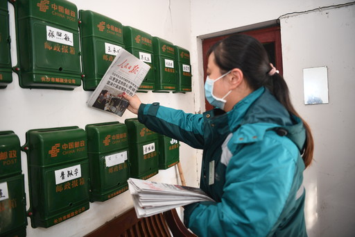 湖南省郵政分公司優(yōu)化網(wǎng)運(yùn)作業(yè)組織和生產(chǎn)流程,縮短投遞內(nèi)部作業(yè)時(shí)限,讓投遞員提早出班,全力以赴做好黨報(bào)黨刊投遞工作,將黨中央關(guān)于疫情防控工作的最新指示精神及時(shí)、準(zhǔn)確傳遞到千家萬戶。湖南省分公司為投遞網(wǎng)點(diǎn)配備了洗手液、消毒液、測溫儀,每隔兩小時(shí)對投遞作業(yè)現(xiàn)場進(jìn)行消毒,出班前、歸班后對攬投車輛進(jìn)行噴灑消毒;為投遞人員配備了醫(yī)用口罩,并在到崗和歸班時(shí)進(jìn)行體溫檢測,體溫正常方可上崗。圖為2月11日,長沙市分公司車站路攬投員楊望歸在芙蓉區(qū)五里牌社區(qū)投遞當(dāng)日《人民日報(bào)》。 記者 劉園園 攝影報(bào)道