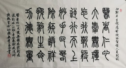 郵友們都知道,蕭老師不僅畫畫得好,字也寫得特別棒,楷、行、草、隸、篆及金文無(wú)所不能。2014年發(fā)行的《元曲》特種郵票,6枚郵票上面出現(xiàn)的代表性名句,均是蕭老師自己用6種書體寫就。這次蕭老師運(yùn)用篆體寫下的抗疫書法作品,第一幅內(nèi)容為“眾志成城,抗擊疫情。山河無(wú)恙,百姓康寧”;第二幅為“萬(wàn)眾一心,共克時(shí)艱,抗擊疫情,國(guó)泰民安”;第三幅為“醫(yī)者仁心,大愛無(wú)疆。忘我戰(zhàn)‘疫’,逆行而上。妙手回春,除疾送祥。挽救生命,功德無(wú)量”,上款為“向戰(zhàn)斗在抗疫前線的醫(yī)護(hù)人員致敬!”可謂字字見功力,幅幅寄深情。