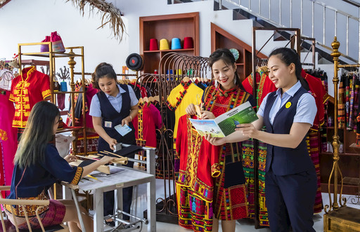 如今,月娥黎族苗族服裝店生意紅火,訂單不斷。鄧月娥表示,正是因為有郵儲銀行在關(guān)鍵時刻提供了資金幫助,她才渡過了難關(guān),才能將黎錦這門手藝?yán)^續(xù)傳承下去?!鹾D嫌浾?nbsp; 梁磊 攝影報道