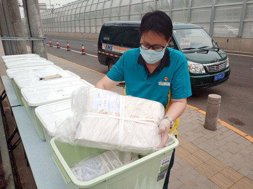 今年全國兩會期間,按照兩會總務(wù)組提出的“全封閉、無接觸”原則,北京郵政采取“定點(diǎn)無接觸式投遞”方式配送報刊、信件等郵件,并使用專用箱對兩會郵件進(jìn)行統(tǒng)一消毒,確保兩會郵政服務(wù)與疫情防控工作萬無一失。圖為北京郵政工作人員在代表、委員駐地外對兩會用報進(jìn)行核對(核對無誤后由代表、委員駐地相關(guān)工作人員接收)。 □記者 楊光 攝影報道