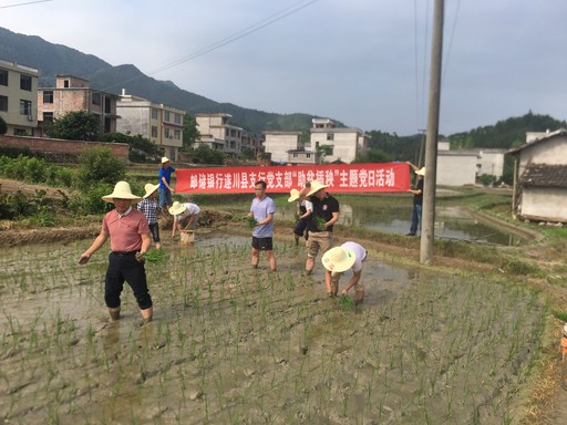 正是插秧時節(jié),郵儲銀行江西省遂川縣支行黨支部駐村干部在走訪過程中,得知新寨村68歲無兒無女的建檔立卡貧困戶謝昌校因身體不適無法及時插秧的情況后,立即向單位黨支部書記進行了匯報。5月19日,遂川縣支行黨支部組織黨員干部一行10余人來到謝昌校家的農(nóng)田,開展“助貧插秧”主題黨日活動,幫助貧困群眾解決實際困難,讓田間地頭成為黨員教育的生動課堂?! 踅逛阡?nbsp; 羅斌 龍星 攝影報道