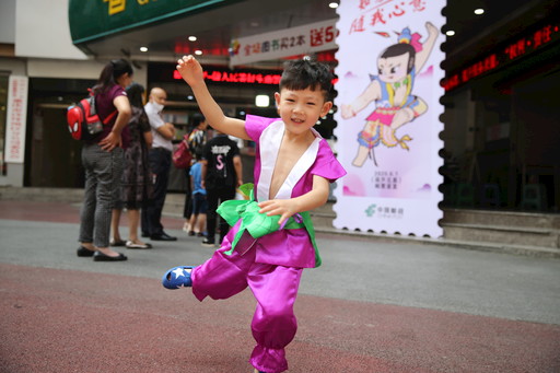 6月1日,重慶市沙坪壩區(qū)三峽廣場郵政支局門前,前來購買《動畫—葫蘆兄弟》郵票的小朋友和家長絡(luò)繹不絕,郵票上栩栩如生的葫蘆兄弟形象吸引了小朋友的目光。三峽廣場支局還特意為到場的小朋友準(zhǔn)備了葫蘆兄弟同款服裝,供小朋友拍照留念。一位小朋友穿上葫蘆兄弟服裝后,在支局門前興奮地手舞足蹈?! 踔靵喞?nbsp; 攝影報道