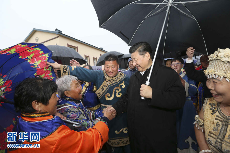 2014年春節(jié)前夕,習(xí)近平來(lái)到內(nèi)蒙古,看望慰問各族干部群眾。他來(lái)到錫林浩特市寶力根蘇木(鄉(xiāng))冬季那達(dá)慕,同牧民們一起觀摔跤,看賽馬,聽長(zhǎng)調(diào),賞歌舞。在傳統(tǒng)的“五畜祈福”儀式上,他按照蒙古族習(xí)俗,用無(wú)名指蘸上銀碗盛著的鮮牛奶彈了三下,祝福來(lái)年風(fēng)調(diào)雨順,五畜興旺,人民幸福安康。