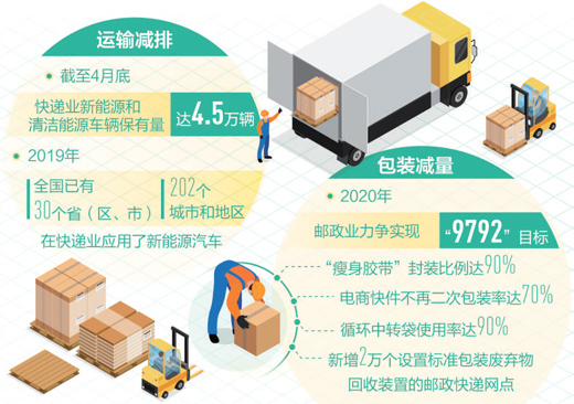 今年,國家郵政局提出“9792”工程,即到今年年底力爭實現(xiàn)“瘦身膠帶”封裝比例達90%,電商快件不再二次包裝率達70%,循環(huán)中轉(zhuǎn)袋使用率達90%,新增2萬個設(shè)置標準包裝廢棄物回收裝置的郵政快遞網(wǎng)點。