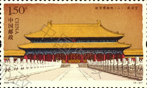 紫禁城建造技藝高超,內(nèi)在考究精妙,外在磅礴大氣,代表著當(dāng)時最高的建造水平。中央軸線上分布著三大殿(太和殿、中和殿以及保和殿)和后三宮(乾清宮、交泰殿以及坤寧宮),左右兩條次軸線上分別分布著慈壽宮、寧壽宮等宮殿。出于防御需要,宮殿建筑外圍筑有宮墻,四周分布有角樓,外有護(hù)城河環(huán)繞。故宮平面示意圖首次登上郵票,細(xì)膩、完整地呈現(xiàn)了故宮恢弘的建筑布局。