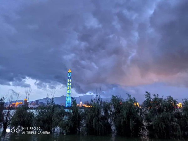 17:30,烏云突然壓境,伴隨著一道劃破天際的閃電,空中炸響了一聲驚雷,頃刻間狂風(fēng)驟起,暴雨傾盆,在堤壩附近的群眾紛紛躲進(jìn)了我們的值班棚應(yīng)急避雨。